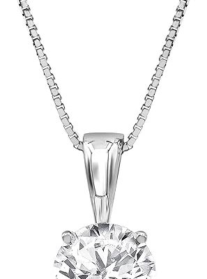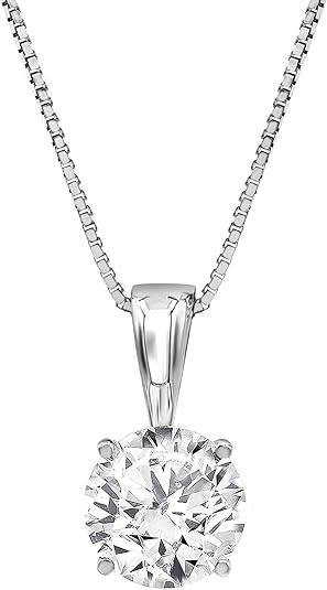 - Gold Jewelry: Attract all eyes with this jaw-dropping set of round cut lab grown diamond solitaire pendant necklace made from 14K white gold. Featuring the iconic round cut, this beautiful lab-grown diamond necklace is placed in a prong setting for a sturdy and balanced look. The 1.00 carat lab grown diamond, with VS-SI clarity, offers exceptional brilliance and fire. Coupled with the sleek white gold, this necklace makes for a fine, ultimately timeless piece of jewelry.
